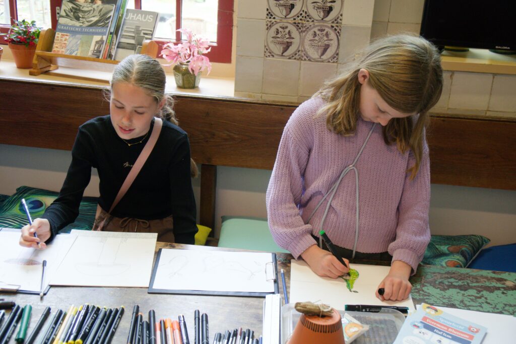 In het museum was een speciaal Kinderatelier ingericht, waar kinderen tussen 6 en 12 jaar woensdag 22 oktober en vrijdag 24 oktober ’s middags creatief aan de slag konden gaan. Er was gelegenheid om te tekenen en te kleuren in de stijl van Jan Voerman senior en junior. Maar ook kon je ervoor kiezen een (model van een) klokbeker te verfraaien.