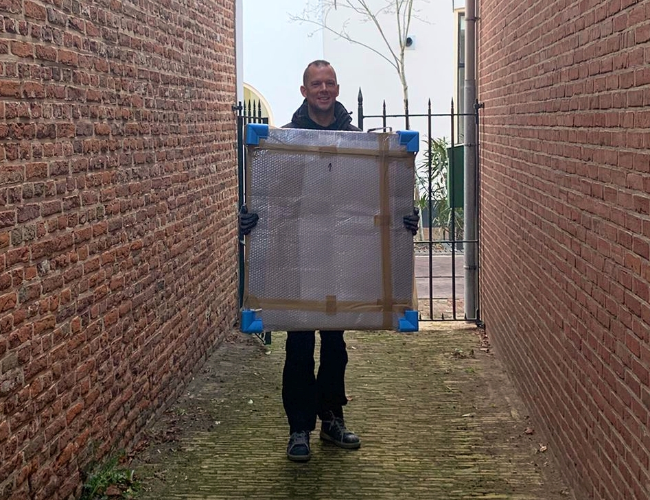 Ze zijn weer thuis! Vier werken van Jo Koster, die vorig jaar in bruikleen waren gegeven voor de expositie ‘Jo Koster kunstenaar’ in Museum Gouda, zijn door een gespecialiseerd transportbedrijf in Hattem terug bezorgd. En dus was er een warm welkom voor het viertal: ‘Bretonse vissersvrouw’, ‘Ezeltje met kar in Italiaans bergdorp’, ‘Nonnetjes langs de Ville Close’ en Bomen op Flip Hul’.